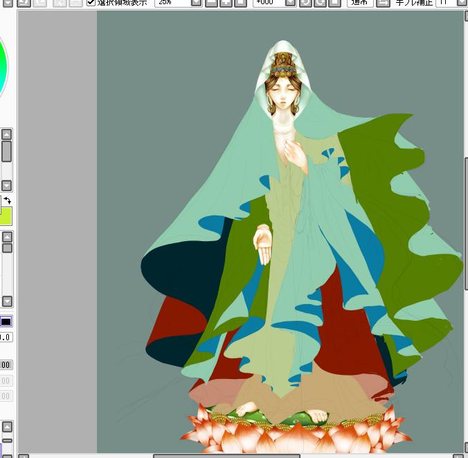 そういえば真面目に菩薩様を描くのは幼稚園以来(幼稚園の園長先生が坊様だった)。花祭りの甘茶はうまかった記憶がある。