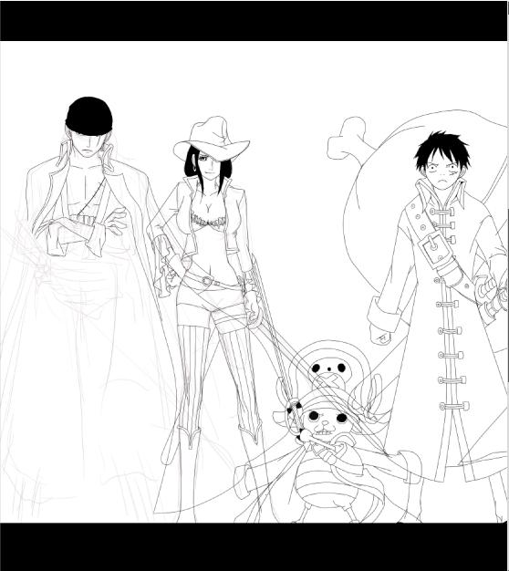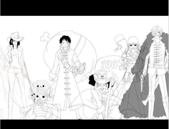ナミとサンジまで線画が終わりました。
