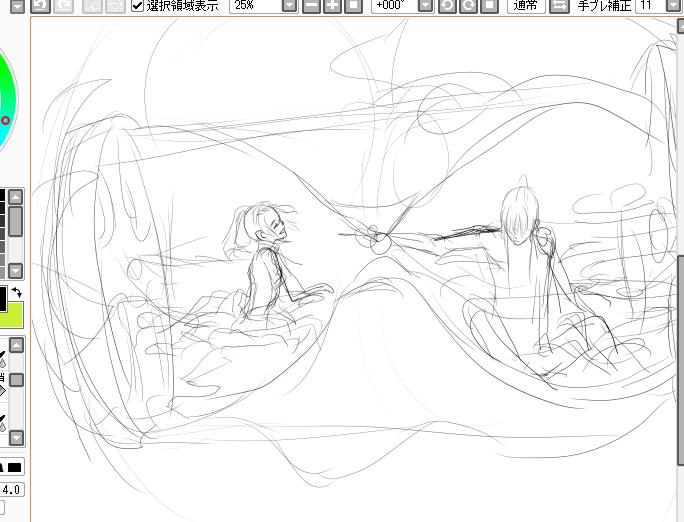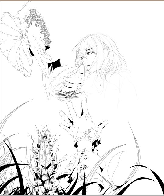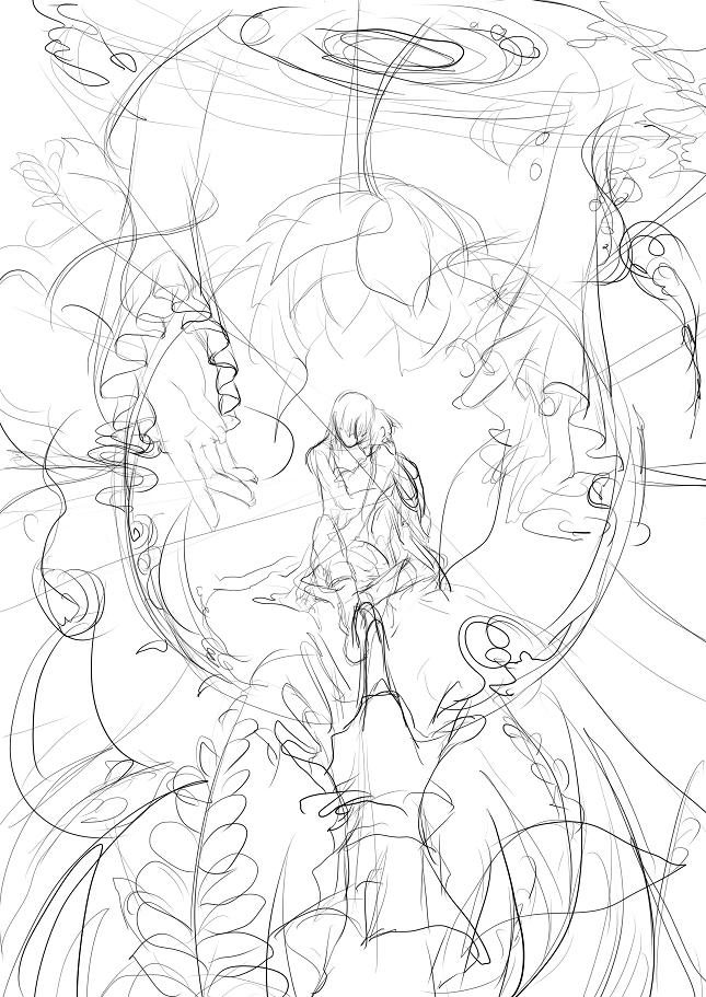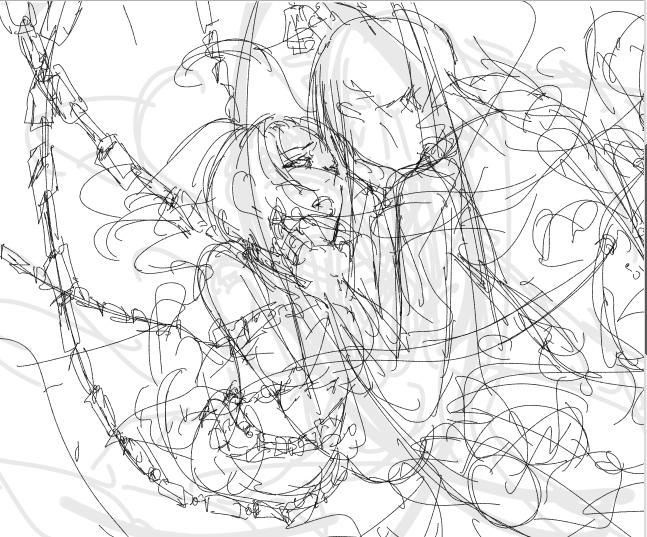 確実に新刊の影響なDグレの絵。今回は主線を描きまくってちょっと暗めな絵にするですよ。